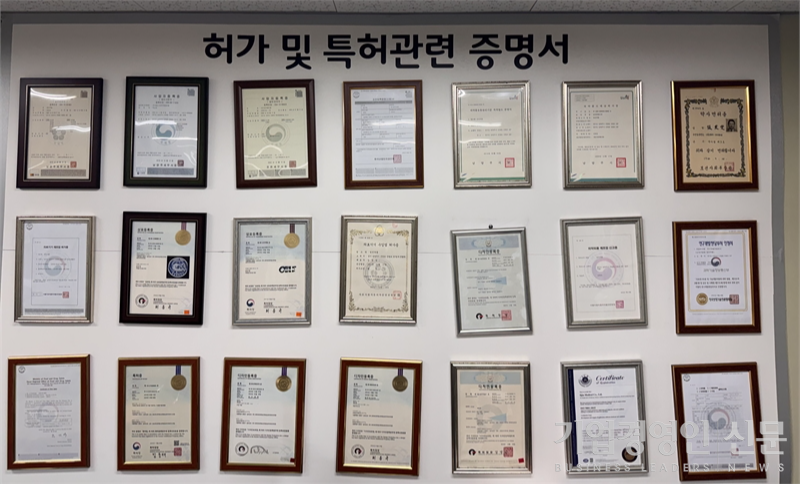 일진약품의 인허가 및 특허 관련 증명서. 일진약품은 직접 고용한 약사 2명의 관리·감독 아래 제품을 생산한다. 또한 식약처의 KGSP 인증을 획득하고, 국가재난대비 중점관리대상업체로 선정되며 투명하고 신뢰할 수 있는 기업으로 평가받고 있다. [사진=일진약품]