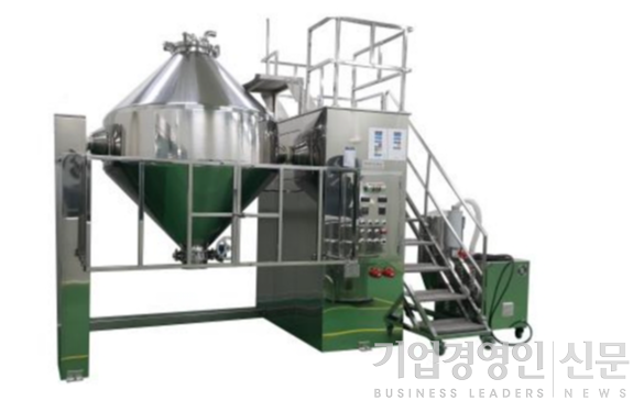 더블콘믹서기 모습. 원료를 고르게 섞어 제형의 균일성을 유지한다. [사진=예본바이어]